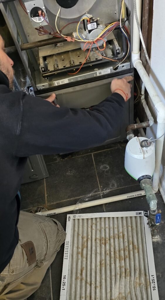 A cracked heat exchanger is a serious safety issue – it can allow carbon monoxide to leak into your living space. If you notice soot around the furnace, a yellow or flickering burner flame, or unexplained illness symptoms in your household, call us immediately. Our technicians are trained to inspect, diagnose, and safely address heat exchanger issues.